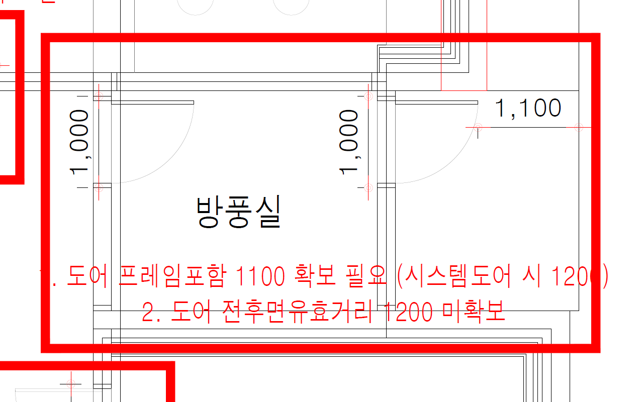 이 방풍실의 도어 사이즈, 전후면 유효거리 모두 미확보 되어 있습니다.