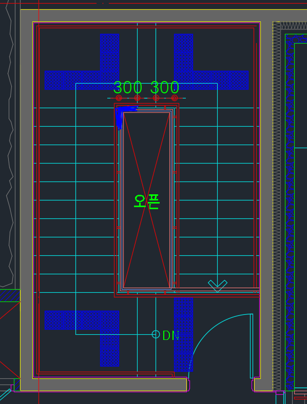 꺽이는 부분, 제가 그림에 파란색으로 표기한 부분 중 세로나 가로부분에 300의 여유공간을 확보해주셔야 합니다.