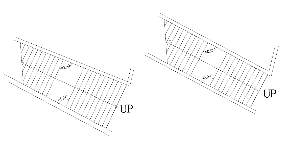* 원형이나 호 형태로 계단의 단을 직각으로 설치가 가능하나 디딤판의 길이가 달라지게 되므로 불가합니다.